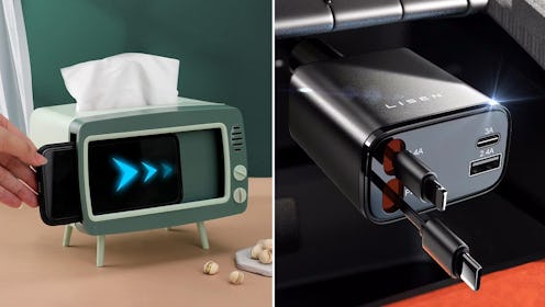 Not only is this tissue box holder the perfect way to hide unattractive cardboard boxes but it can also be used to watch your favorite shows hands-free. Your phone can be slid into the front slot so that its retro design looks even more realistic. Plus, the legs can be removed if desired.