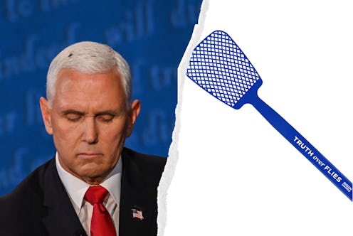 On Wednesday night, the Vice Presidential debate between Kamala Harris and Mike Pence inspired strong reactions on social media, with two particular moments standing out most. First, Harris responded calmly to Pence's multiple interruptions with the phrase "I'm speaking." It was a firm but graceful gesture that resonated with women who must contend with men talking over them in meetings, at dinner, and the like. And then, there was the fly. The insect landed atop Pence's head at the very moment he started denying systemic racism, and sat there for almost two minutes before flying away. Both incidents inspired "I'm Speaking" & Fly merch, with some items going live mere hours after the debate finished.