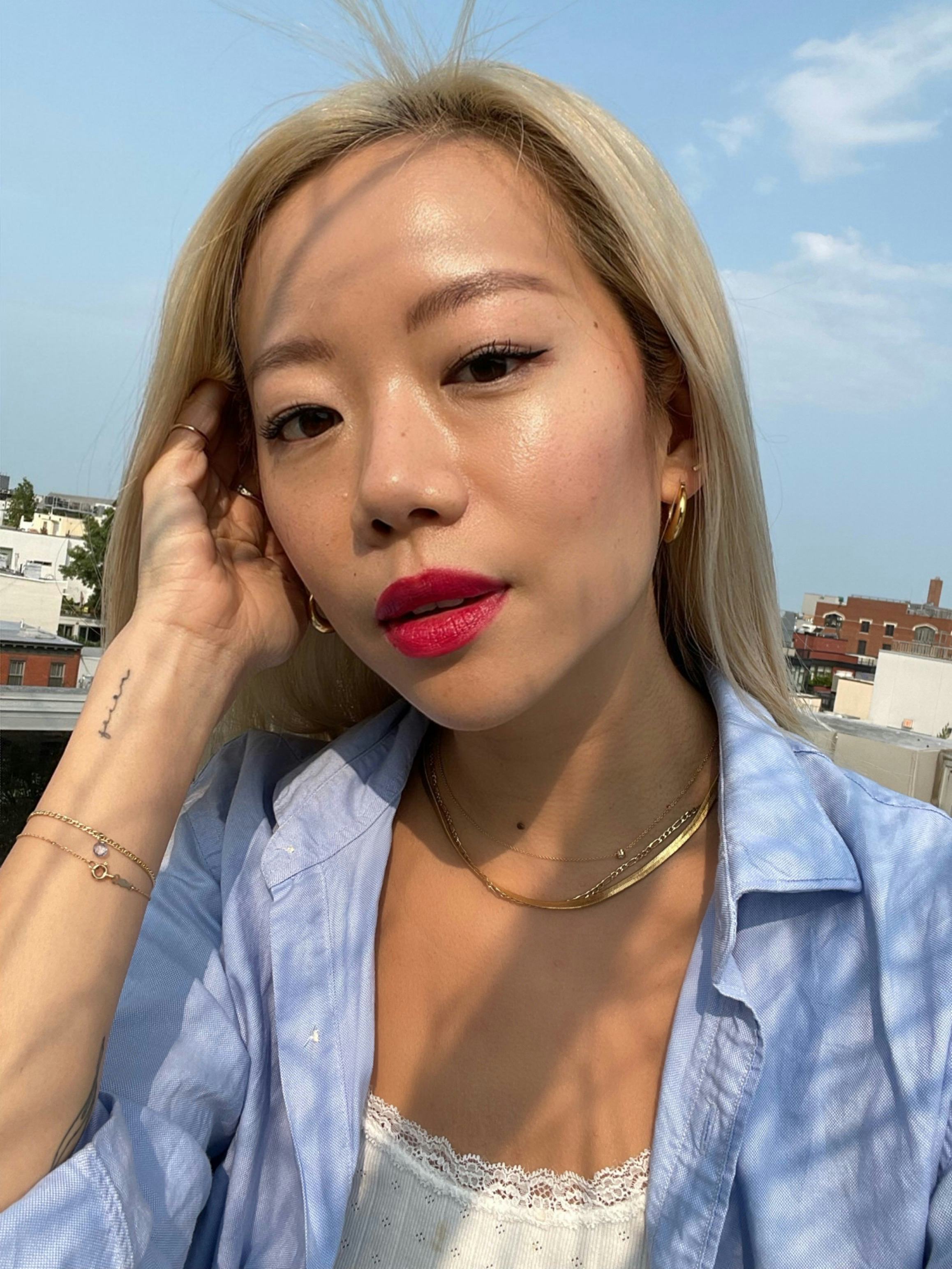 Plus, the pigment payoff is lusciously intense, and it drenches your lips with juicy color with just one coat. To amplify the pigment, all you have to do is apply multiple layers – I found that my perfect color payoff was around one to two coats. Supergoop! Lipshade comes in five colors, all of which are perfect for any summer occasion, whether you’re frolicking on a roof during the day or vamping it up for a night out with your girlfriends. Below, see me test out the shades on a particularly warm and sunny day in NYC.