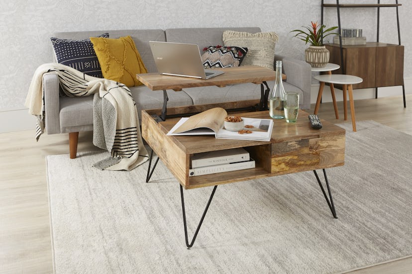 No room for a desk? No problem. Not only does this stylish coffee table allow you to store your office supplies, but the top lifts up for easy laptop access. Plus, its oak finish means you won't have to compromise your aesthetic for extra storage.