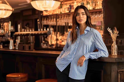 In a preppy blue-and-white striped print, this button-down shirt this shirt is ideal for women wanting to add a little menswear flair — take a cue from Paul Mescal and pair it with shorts, socks, and loafers, and add a red sweater. Designed with a semi cutaway collar and single cuffs, the pure cotton silhouette stays blissfully wrinkle-free thanks to a proprietary treatment.