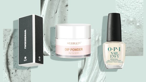 If, after removing your acrylics, you notice that you have a hangnail or a broken tip that you don’t want to cut off, Aaron recommends using a nail repair kit like this one. It comes with a gel glue resin and a dip powder that ‘glues’ the broken pieces back together, plus a buffer and a nail file to ensure that the dip powder-covered breakage blends into the rest of your natural nail.