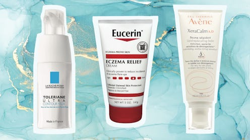 Finding the right products to treat your eczema can already be difficult, but when flareups occur on a delicate spot like your eyelids, they present a whole other set of challenges. To treat flaky patches without further irritating skin, the best eye creams for eczema will be 100% fragrance-free and made with moisturizing ingredients like ceramides and hyaluronic acid. "The ceramides help restore and repair the skin around the eyes and the hyaluronic acid safely hydrates this delicate area," explains board-certified dermatologist Dr. Debra Jaliman, who spoke to Bustle for this article. Bonus points if they have the seal of approval from The National Eczema Association.